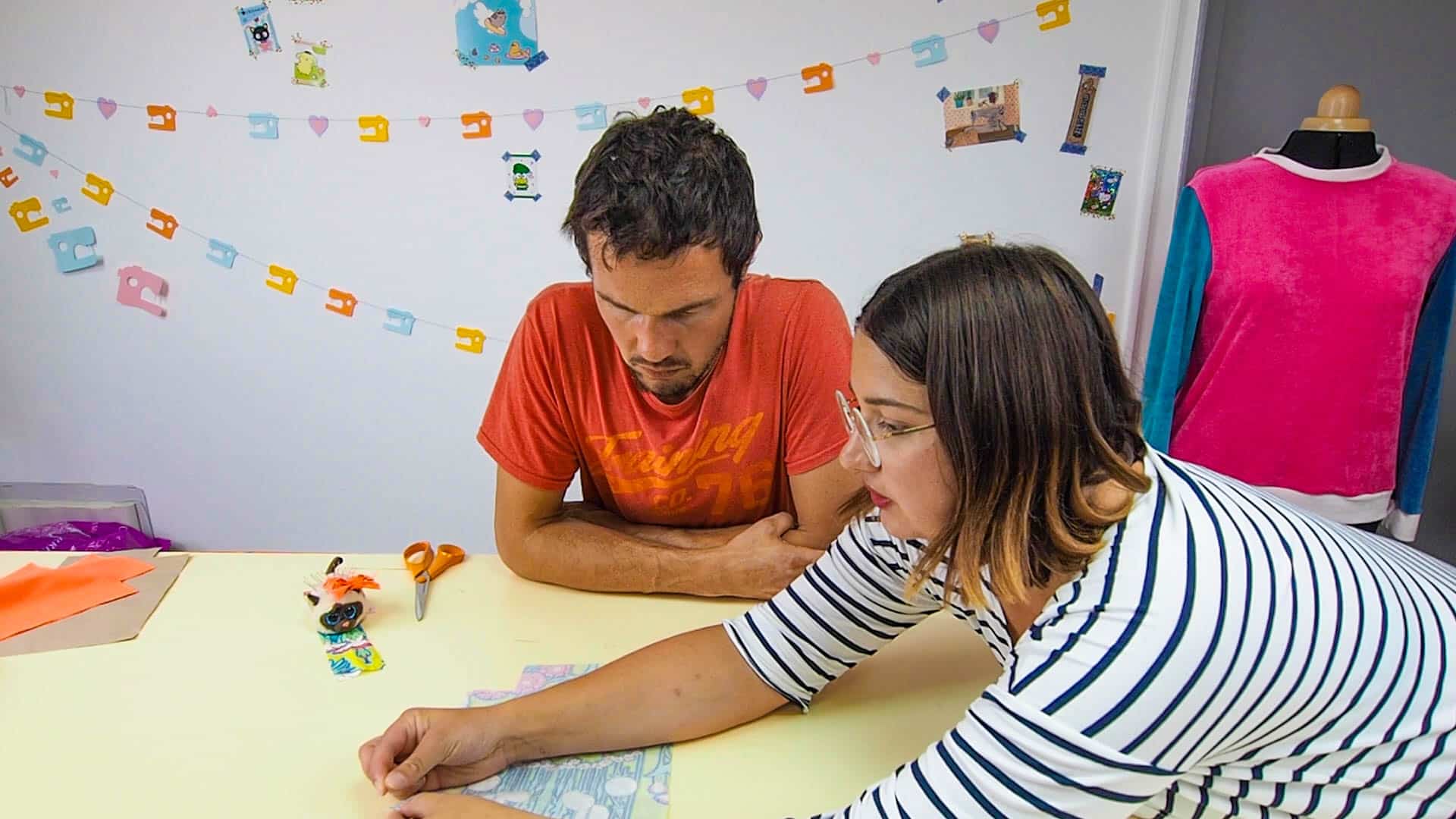 Comme je n’ai plus le temps de donner des cours en présentiel, j’ai décidé de filmer le tout premier atelier que j’animais toujours avec mes élèves. L’idée : guider ceux qui viennent de recevoir leur machine à coudre et se sentent un peu perdus. Pour corser l’expérience, j’ai invité un vrai novice : Sylvain, du Youtube canal Chéri I rétréci les arbres. Malgré une famille passionnée de couture (sa sœur, c’est moi !), il n’avait jamais touché une machine. Il s’est prêté au jeu, parfait pour incarner tous ceux qui débutent vraiment. Petite parenthèse : Sylvain vient de lancer sa chaîne Youtube sur les bonsaïs, sa passion. Il m’a d’ailleurs invitée sur sa première vidéo pour réaliser un bonsaï éternel (je confesse, je ne suis pas douée avec les plantes…). J’ai trouvé amusant de l’emmener cette fois dans mon univers.