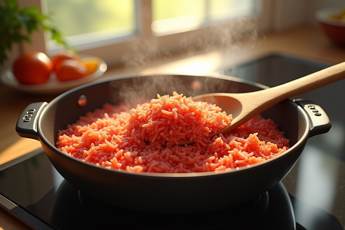 La méthode la plus répandue pour cuire le riz rouge reste la cuisson à l’eau. Utilisez un ratio de 2 volumes d’eau pour 1 volume de riz. Portez l’eau à ébullition avant d’ajouter le riz. Couvrez et laissez mijoter à feu doux pendant environ 35 à 40 minutes. Cette technique garantit une cuisson uniforme des grains et préserve les nutriments essentiels.